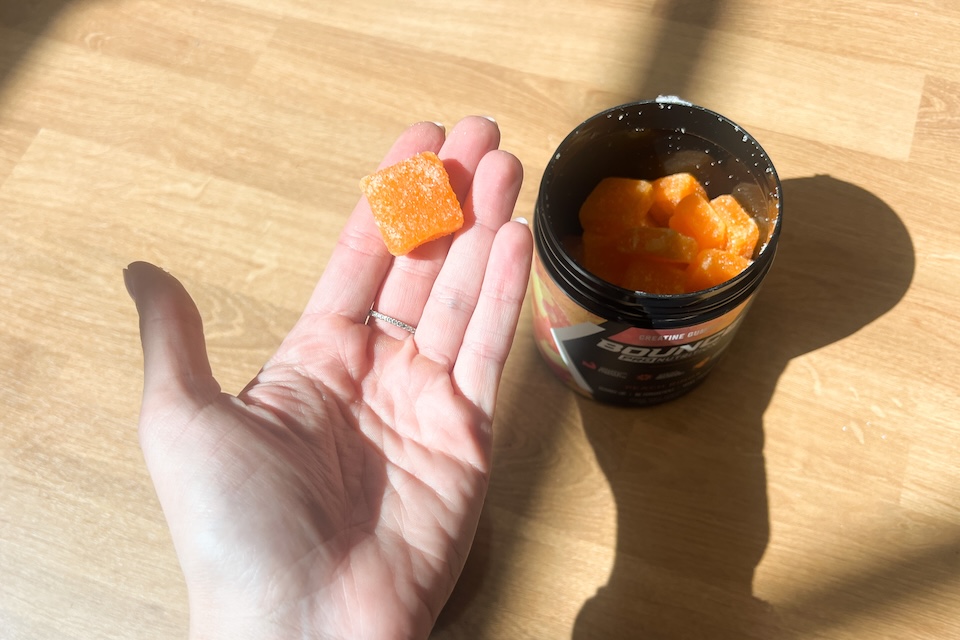 Kate thought these were only mildly sweet. “It was sweet, but not super sweet where I didn’t want another one,” she said, giving the taste a 3.5/5. “I didn’t have any lingering stomach pains which could happen with a really sweet gummy. This was a very happy medium!”