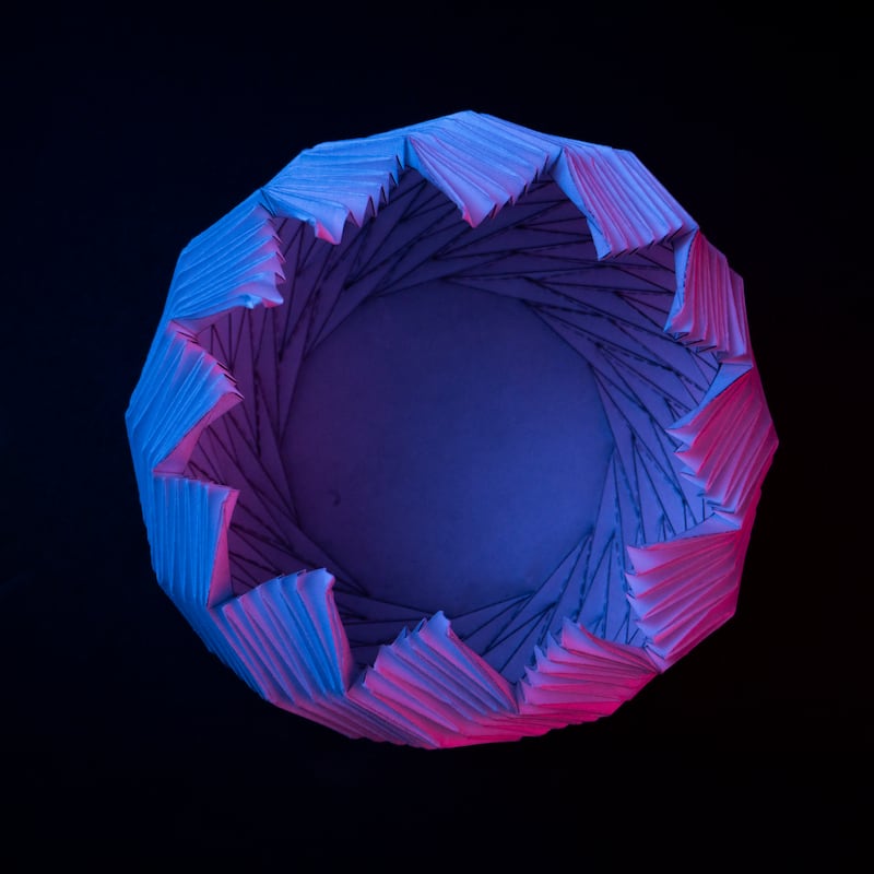 A new flower-bloom origami pattern that Brigham Young University student Kelvin (Zhongyuan) Wang discovered is displayed. | Aaron Cornia, BYU Photo