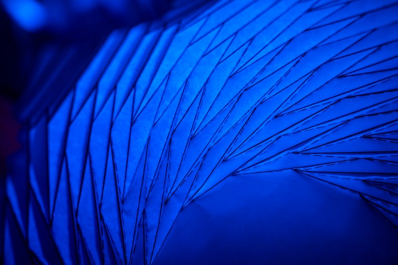 A new flower-bloom origami pattern that Brigham Young University student Kelvin (Zhongyuan) Wang discovered is displayed. | Aaron Cornia, BYU Photo Infinite possibilities