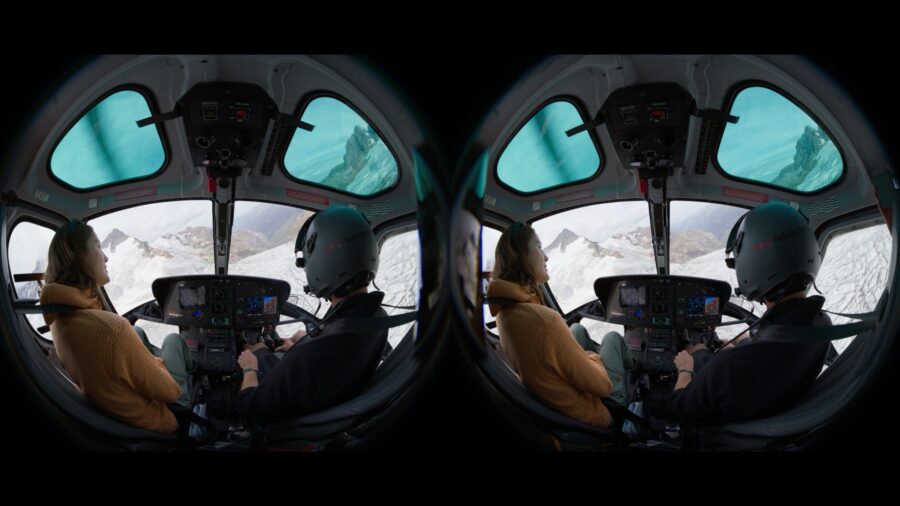 A highlight of our shoot was taking a helicopter flight. With nothing more than the camera on a tripod, we were able to shoot the helicopter’s arrival, departure, and the flight itself. Inside the helicopter, we positioned the camera facing forward with a view of the pilot and passenger. The footage is stunning; we love being able to see the view ahead and also the pilot’s hand and feet as he controls the helicopter. It’s difficult to explain how real the experience feels inside the Vision Pro. We’ll be releasing the Immersive video later this year so you can see for yourself.
