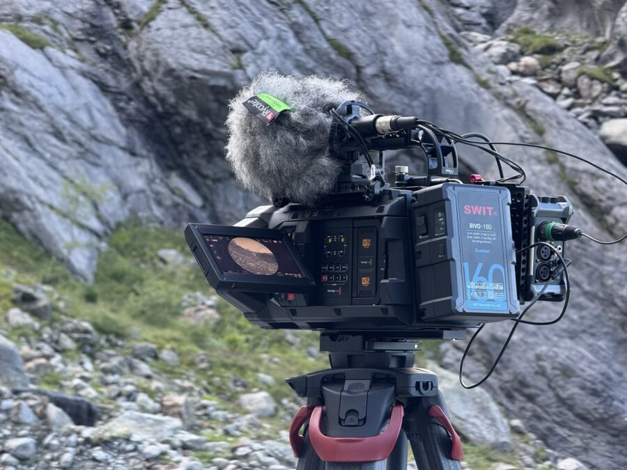 SWIT batteries and a Zoom F6 and Sennheiser Ambeo for ambisonic audio. Image credit: Team2Films