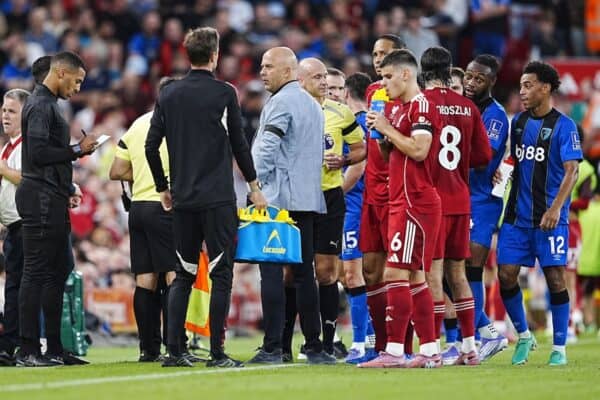 Referee Anthony Taylor paused proceedings 30 minutes into the opening game of the Premier League season, after Semenyo reported racist abuse from a Liverpool fan.