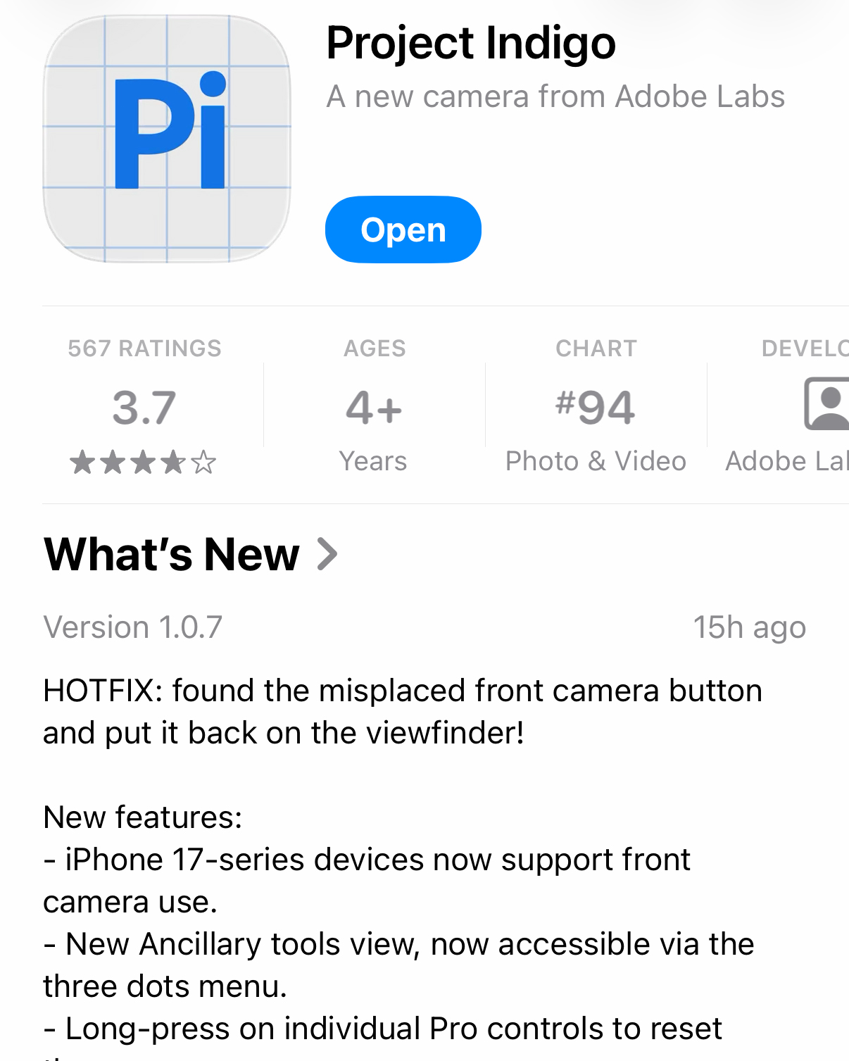 Project Indigo now supports the iPhone 17’s selfie camera.