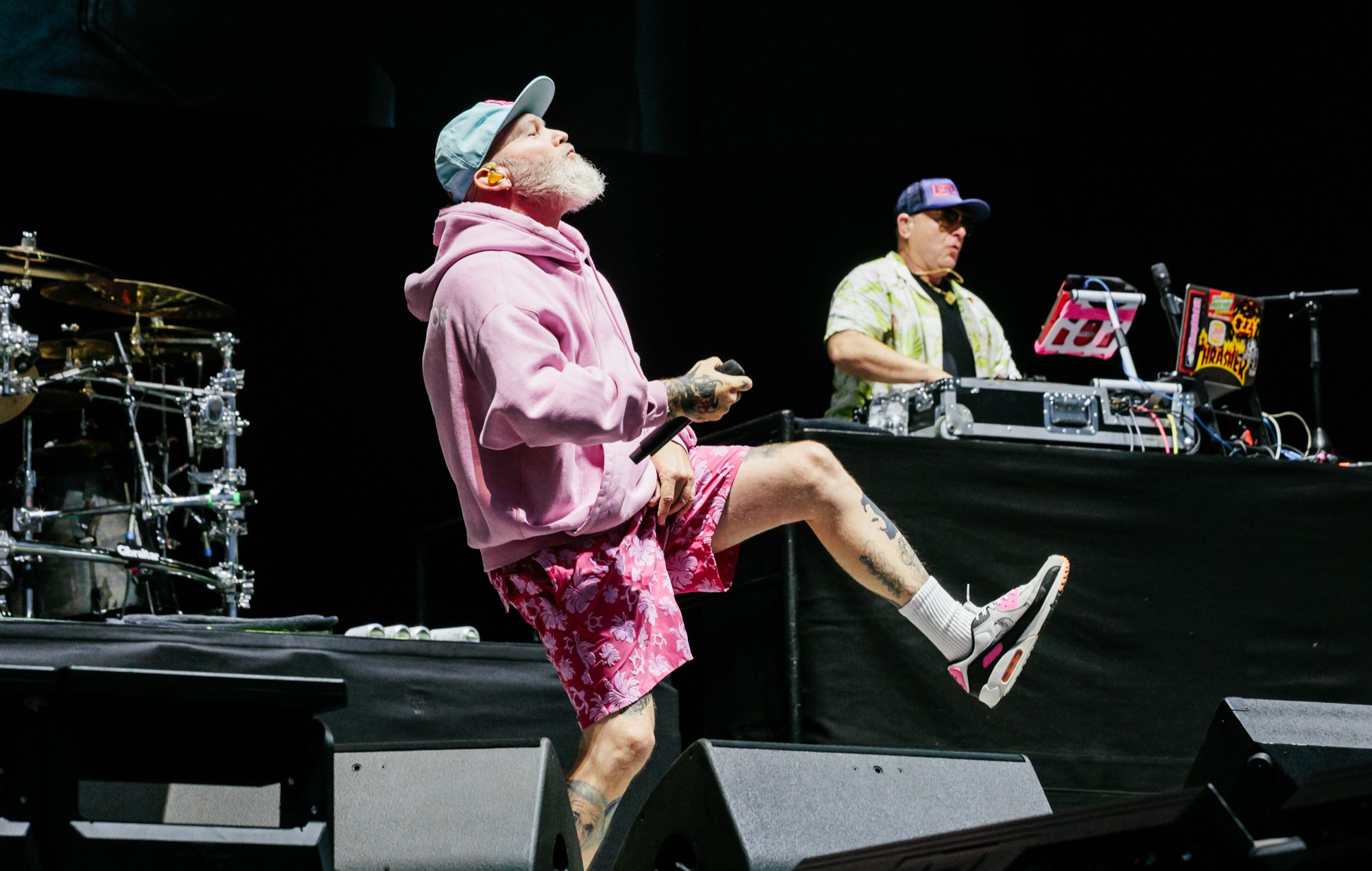 Seeing as they’ve been more or less touring nonstop since the release of 2021’s ‘Still Sucks’, it comes as no surprise that their set at Reading tonight is technically seamless. After walking out to Oasis’ ‘Roll With It’ – backed by an odd, seemingly AI-generated image of Liam and Noel Gallagher giving them a thumbs up – the band prove that they have the formula to whip thousands into a feral frenzy with little effort required. “This is so much fun – and let’s hear it for this beautiful weather,” Durst quips, looking out into the looming grey clouds as the audience find any excuse to break into another mosh pit.