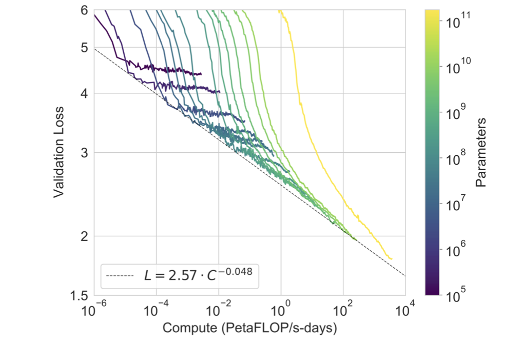 This image shows scaling laws, showing how we can see increased performance with increased scaling. I argue the same thing will happen when scaling our LLM usage. Image from NodeMasters.