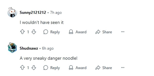 The little ‘dangernoodle,’ as the Redditor dubbed it, was so well hidden fellow users were left scratching their heads even after receiving hints in the comment section.