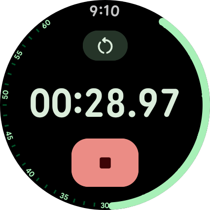 Now, putting your wrist down or having the screen time out when the Timer is active lets you keep using the app. The AOD removes the circular countdown ring. All buttons (restart, end, and pause) get thin outlines that are no longer filled-in, while seconds are replaced by dashes.