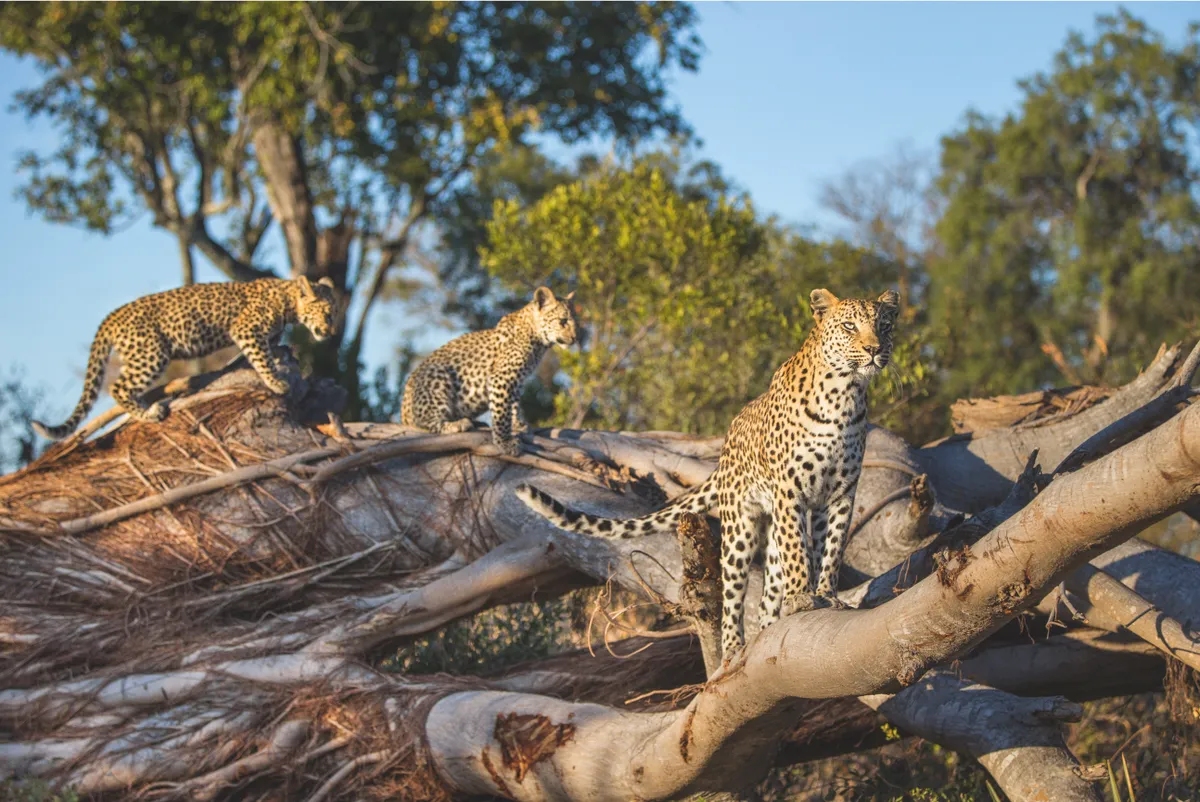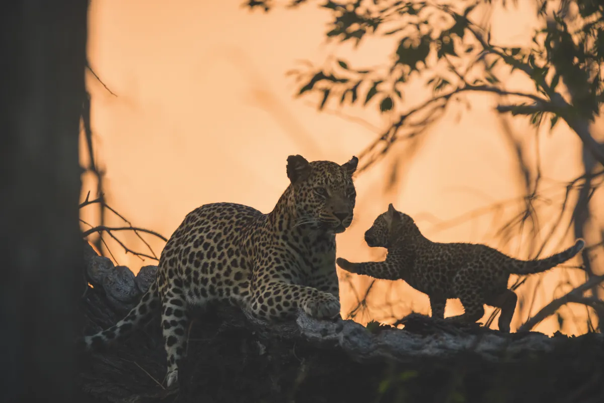 Of all the big cats, leopards are the most adept at climbing, with males famously able to drag carcasses three times their own weight up into the branches. Here, one of Camp Female’s cubs chases her up a steep, sheer trunk. Suzi Eszterhas