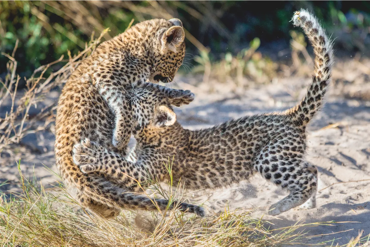 Leopard cubs are aggressive in play, and these siblings were no exception. If a skirmish was particularly intense, one of the pair would break off and return to its mother for a nuzzle before re-entering the fray. Suzi Eszterhas
