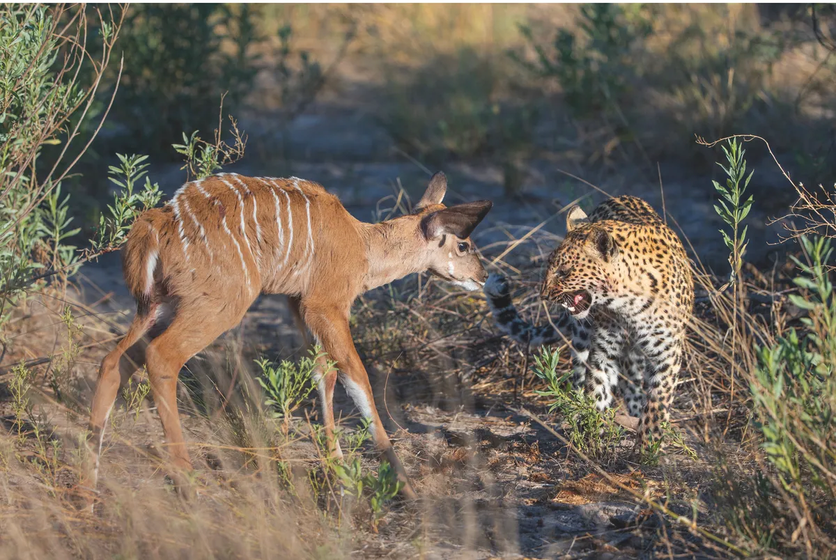 Leopard cub mortality is high, with less than 50 per cent typically surviving to adulthood. Both of Camp Female’s cubs thrived, however, and by the age of four months were noticeably bigger, stronger and more agile. Suzi Eszterhas