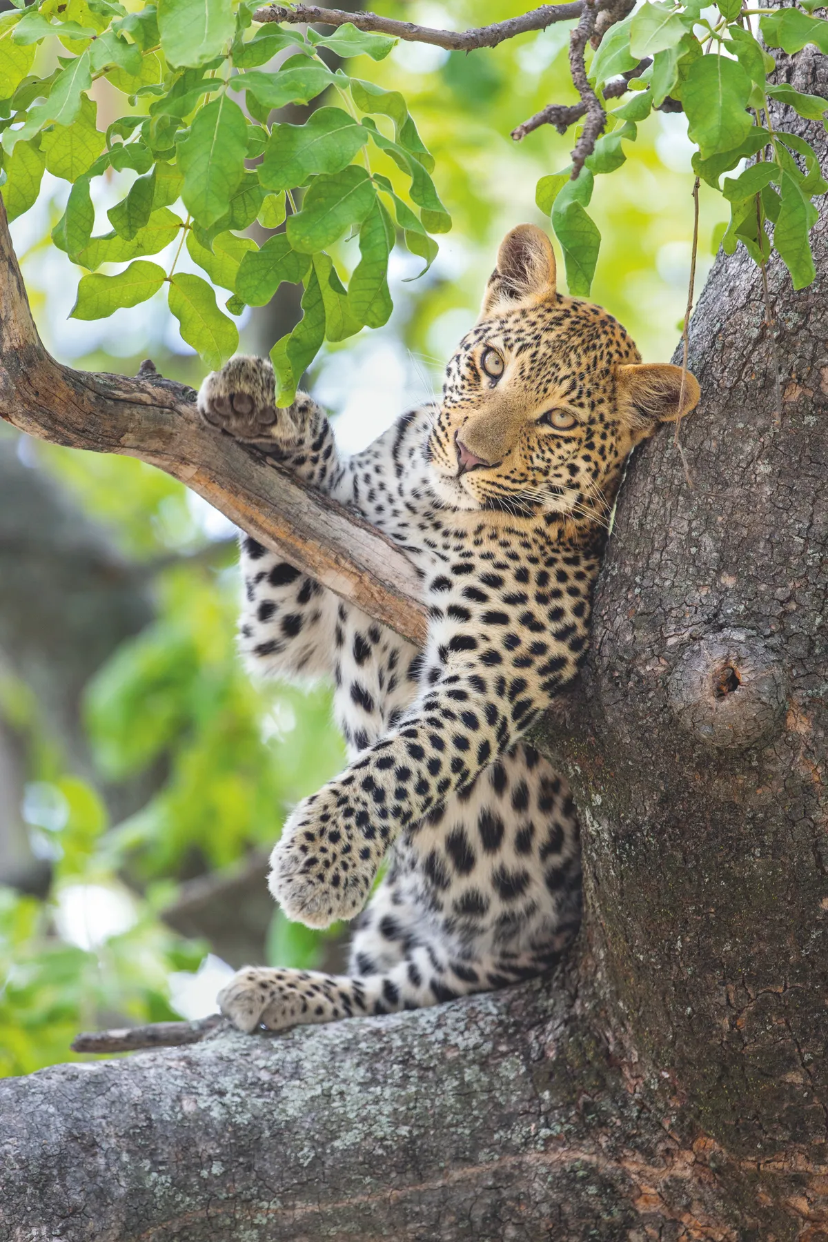 Having become proficient climbers, the young leopards doze away the midday hours in the cool and safety of the trees. In a few months, the siblings will be on the cusp of independence. Suzi Eszterhas