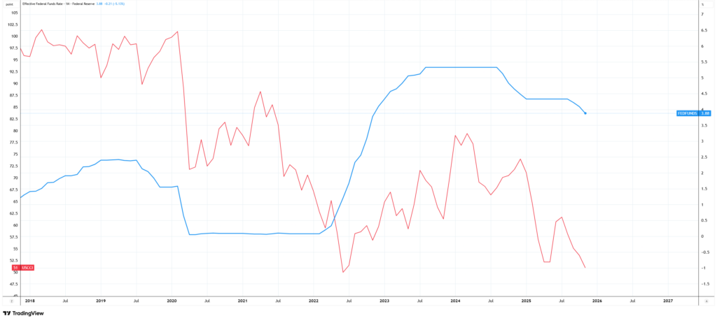 FED Funds Rate vs Conference Board Consumer Confidence Index, Source: TradingView