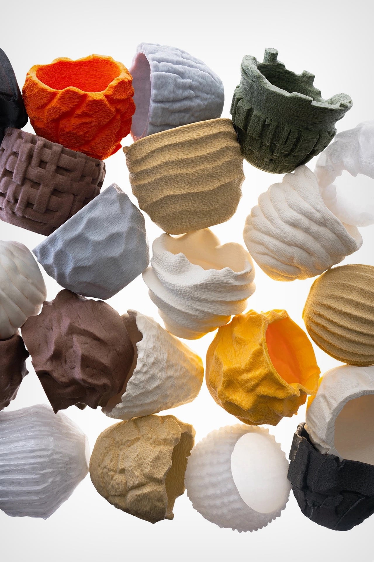 Users can make cups inspired by brutalist textures of concrete, fuzzy textures of moss, rustic textures of wood-bark, wrinkled textures of crumpled paper, raw textures of coal, columnar textures of basalt rock, porous-like textures of coral, or even alien-like textures of fungi. Each cup looks unique and the AI never repeats itself, which means even cups within the same texture category could be wildly different.