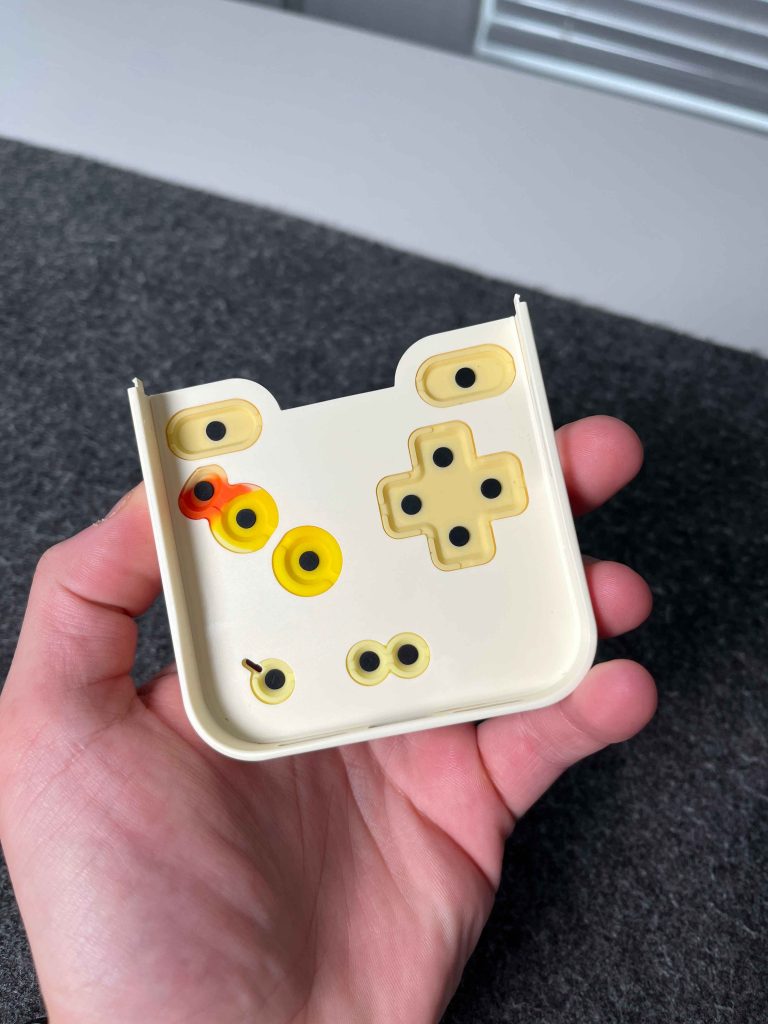 The design of the case is what really draws you in. The case is a two-piece design that snaps together. A regular protective case on top with a camera plateau cut out and a camera lip, and a flip-to-play button panel on the bottom. As a standard case, it’s completely normal. The case is slim, lightweight, and surprisingly durable, even though it’s made of plastic. When you use it as a case, it just looks like a fun, playful, and retro-inspired one. It has all the necessary cutouts for the speaker grills, the USB-C port, and the Camera Control button as well.