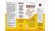 The recalled ReBoost product includes lot number 224268 with an expiration date of December 2027 and can be identified by its bottle label and carton. A product photo can be found below.