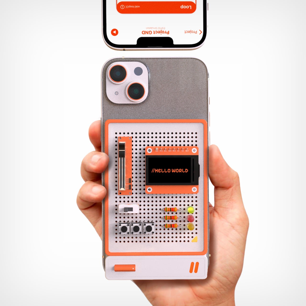 You can tell Yang actually built and tested this thing because of how the modular split works. Sometimes you want the board magnetically stuck to your phone for portable testing. Other times you need it detached because your circuit blocks the camera or needs more space to breathe. The MagSafe frame has that circular cutout positioned exactly where iPhone camera arrays sit, which matters more than it sounds. Misalign that by a few millimeters and the magnetic connection feels sketchy. The orange border serves double duty as brand identity and a visual indicator of where the two pieces separate. Good industrial design makes functional divisions obvious without needing instruction manuals, and this pulls it off cleanly.