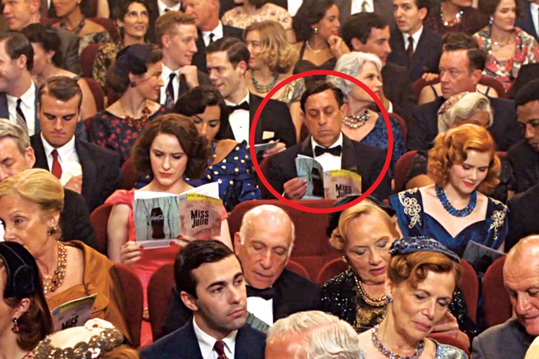 Since then, Gold has booked more than 40 background roles, mostly on TV, portraying just about every type of New Yorker you can imagine: a pedestrian on Mr. Robot, a restaurant patron on Feud: Capote vs. the Swans, a hospital visitor on Fleishman Is in Trouble, a strip-club customer on The Deuce, a parent at a children’s show on You, and a synagogue-buffet-line guest on Hunters, among others. People tell him he has a great face — naturally patrician, unmistakably of old New York, suggesting the type of person you’d actually expect to see in a midtown restaurant or seated in the orchestra level of the Met — which made him especially useful on The Marvelous Mrs. Maisel, where he fit so easily into the mid-century Manhattan setting that he was hired eight times. In one episode, he sits behind Rachel Brosnahan at a Broadway show, chatting with a seatmate and flipping through a Playbill — the most screen time he’s ever had. “That was my luckiest break,” he says.