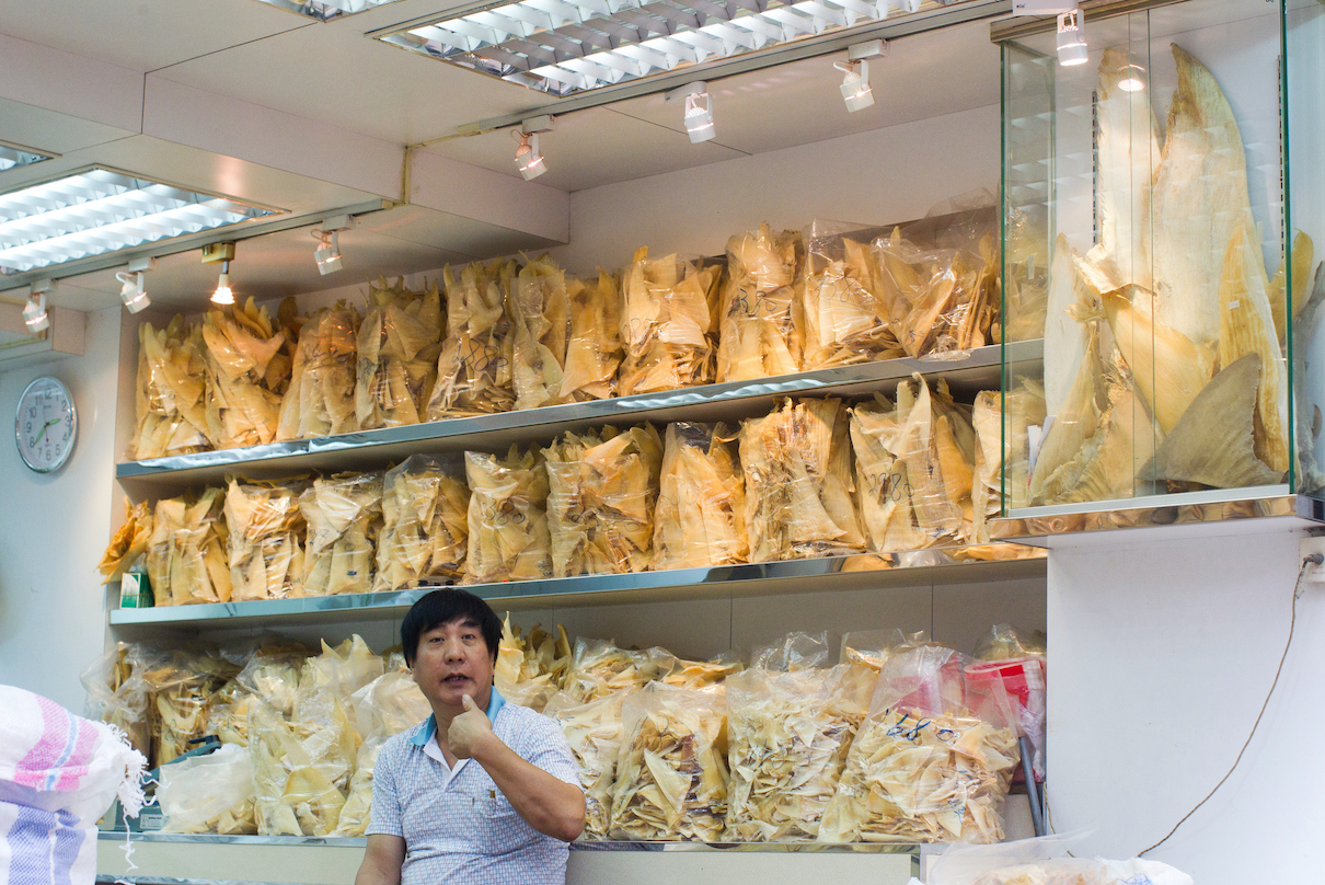 Shark fins on display in the Sheung Wan district of Hong Kong. Photo by Paul Hilton / Earth Tree Images.