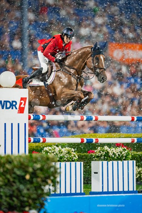 Laura Kraut and 9-year-old Emeraldo rose to the occasion to jump a winning round the Prize of StädteRegion Aachen 1.50m CSIO5* at CHIO Aachen (Germany)—“in the wildest, windiest weather I have ever witnessed for a jumping contest,” Brinkman recalled