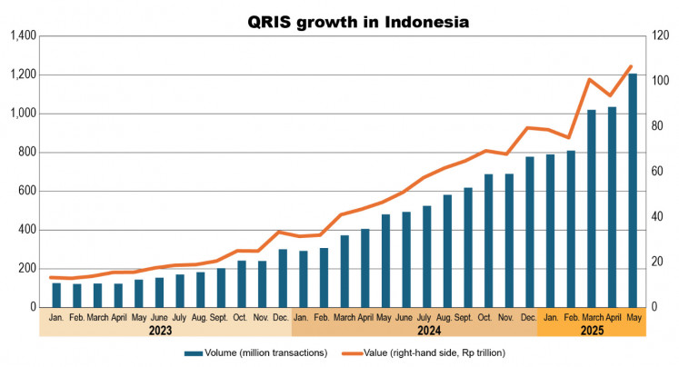 According to BI, as of May, the total number of QRIS merchants nationwide exceeded 38 million, with strong growth recorded outside Java, which booked 19 percent growth. Kalimantan recorded 24 percent growth, while Sulawesi-Maluku-Papua, Sumatra and Bali-Nusa Tenggara posted 24 percent, 19 percent and 16 percent, respectively.