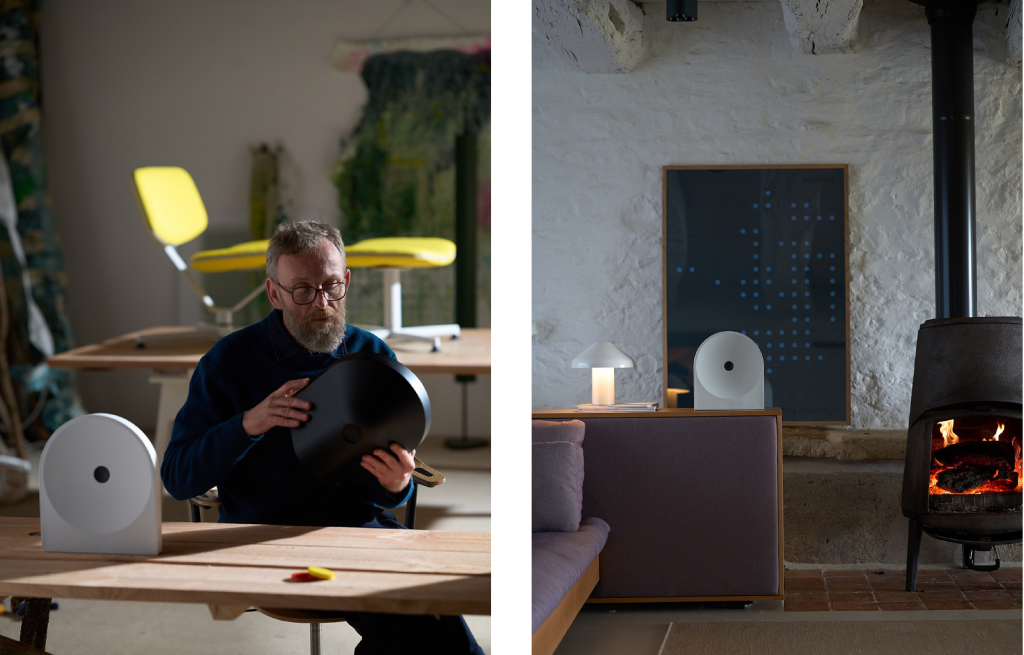 Pictured: (R-L) Samsung’s Music Studio 5. Cables not shown. Designer, Erwan Bouroullec, with the Samsung Music Studio 5. Black and White models depicted. Cables not shown.
