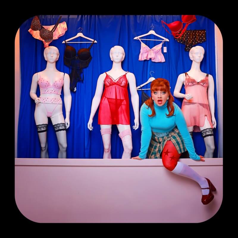 IT ONLY TAKES A cursory listen to those first two records—2022’s If My Wife New, I’d Be Dead and 2023’s Crazymad, For Me—to get a sense of that encyclopedic knowledge I glimpsed in conversation, sweeping everything from outlaw countrymen to the lush “Nashville sound” of the ‘50s (think Patsy Cline) to campy glam-pop to contemporary Top 40 (she credits advice she received from Charli XCX at a fan listening event as the impetus to her getting serious about making music) into a singular style. Much of this education and clear obsession with the form seems to have happened in her teenage bedroom, waiting for real life to happen. At one point, we find we shared at least one peculiar childhood hobby: “Clocking in after school to fight with random old men on Beatles forums,” in her words. (“Which one was your favorite?” she asks me, awaiting my sheepish reply of “John.” “Same,” she nods, before adding conspiratorially, as if the McCartney camp has eyes and ears stashed in the swanky hotel walls, “and I know that’s not in vogue now, because you know who the algorithm has been pushing these days.”) These accumulated sources of inspiration manifest sonically, but also in a reputation for being a powerhouse performer, built upon a storied history of taking the painful emotional concerns of her songs and blowing them up to something worthy of kitschy, maximalist expression—no marking it, ever.