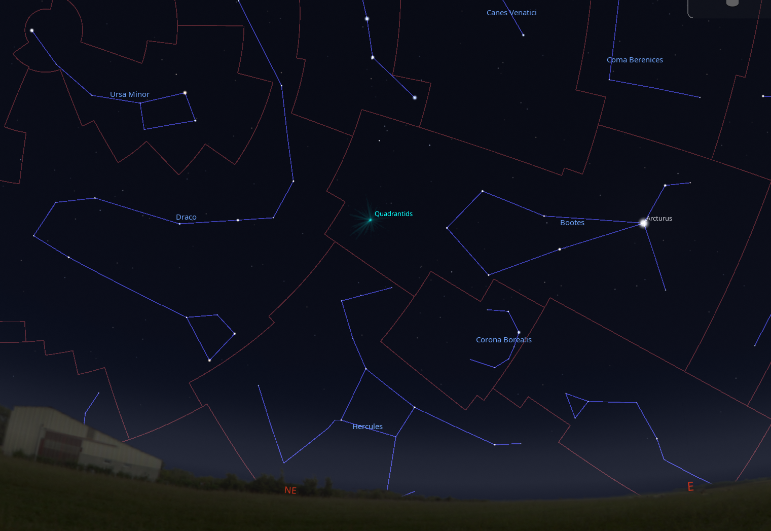 The Quadrantid meteor shower radiant. Credit: Stellarium.