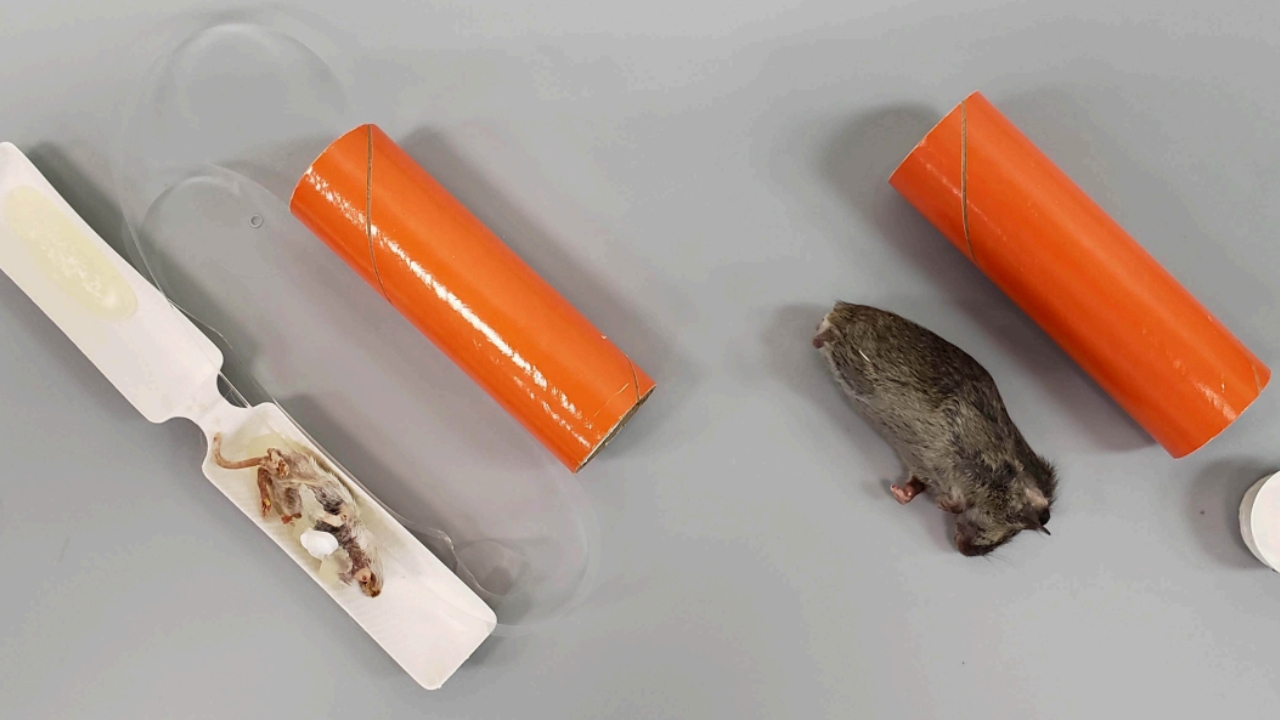 Right: proposed alternative ground bait consisting of a dead rat. 13 to 17 g on two 80 mg tablets inserted into the body.