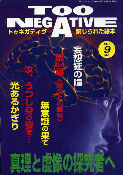 Too Negative is a ’90s art zine from Japan. A typical issue is a carnivalesque cavalcade of the Chapman Brothers, Manuel Ocampo, and Joel-Peter Witkin, all interspliced with tabloid grotesquery and vintage medical ailments. The constant confabulatory barrage of de-formation bubbles forth a monstrous in-between sensationalism of both ultra- and non-humanism. Recommended for daily nightly consumption to make the earthly news cycle we’re exposed to more palatable — just go ask Alice’s mangled torso, “after such a fall as this, I shall think nothing of tumbling down stairs!” – Nikita Mazurov