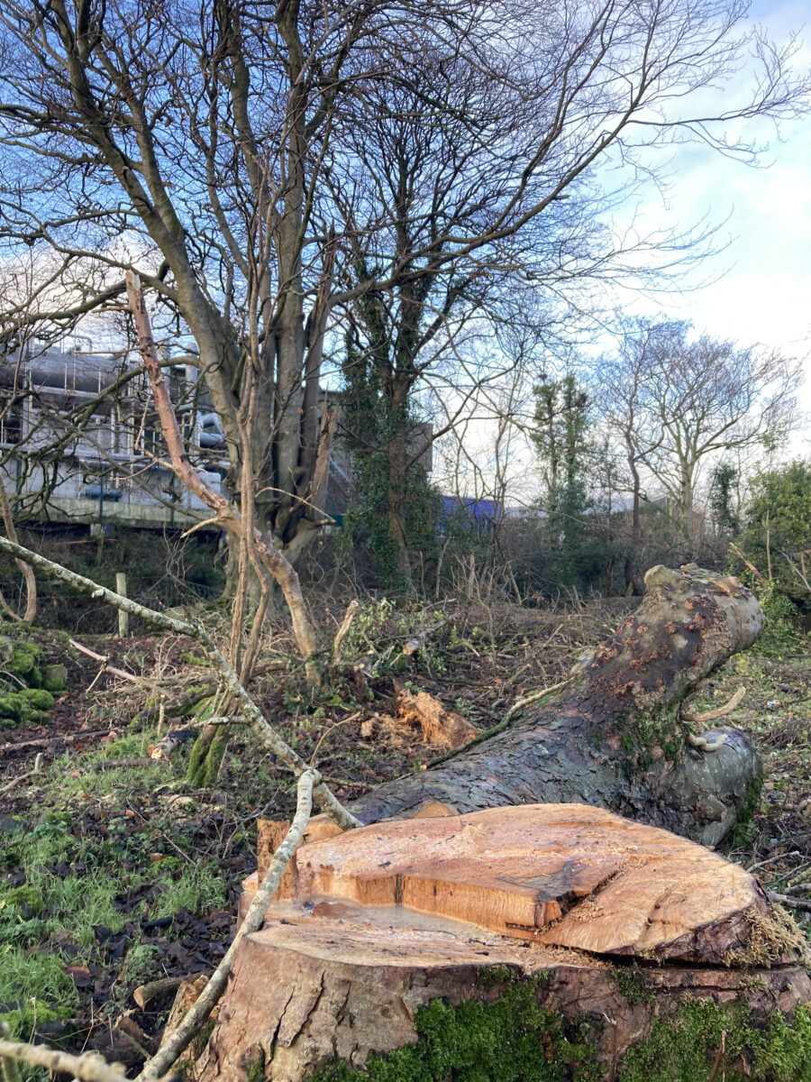 Main pic: Remnants of the trees that were cut down in December 2024.