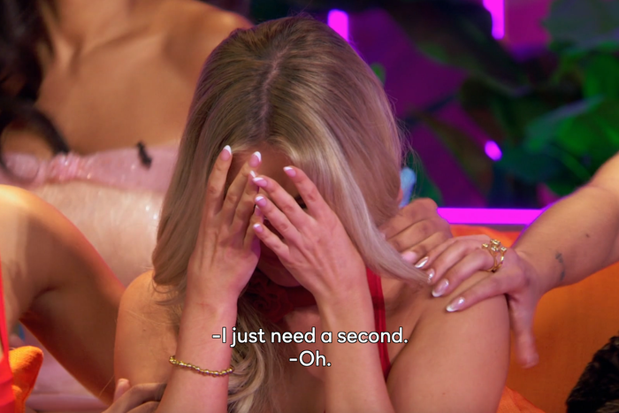 The sisterhood is in shambles. In their first real confrontation after the Call Her Daddy interview, Olandria and Chelley tell Huda how much her bullying allegations hurt them. Once Huda got her phone back, she saw a clip of Chelley, Cierra, and Olandria (with their respective couples) discussing how they didn’t like the way Huda was treating Iris. Huda, who was working out with Jeremiah at the time, thought the girls were making fun of her and felt that when she saw the clip, it confirmed her suspicions. There was also the whole Huda bringing Chris out of Casa Amor for Chelley — both women had a different but equally valid POV: Chelley felt like Huda was pressuring her to go along with it, and Huda was insistent that this was the best decision for everyone.
