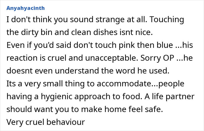 Netizens acknowledged that the husband’s reaction was inappropriate, particularly shouting in front of the children. At the same time, they pointed out that the OP’s strict hygiene rules and OCD behaviors were also contributing to the tension. Who do you think is more at fault here? The OP for her hygiene rules or her husband for losing his temper? We would love to know your thoughts!