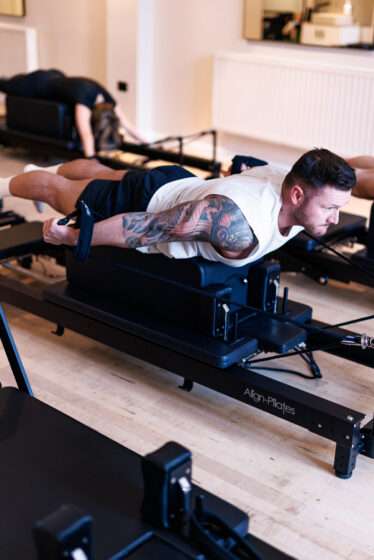 Unlike mat Pilates, reformer is performed on a machine – called a reformer – which uses spring-based resistance to create a fuller range of movement and scalable difficulty.