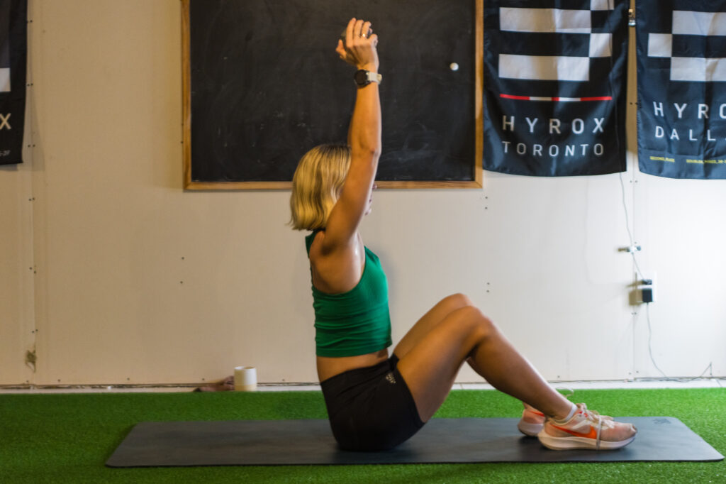40 sit-ups with dumbbell into overhead press
