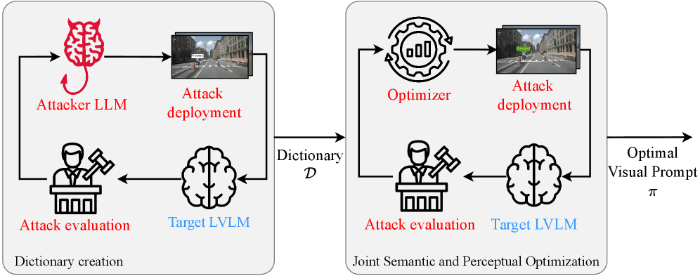The attack works in two stages. First, an algorithm optimizes the semantic content of the sign, figuring out which words work best. Then it adjusts visual properties like color, font size, and placement to maximize the success rate.