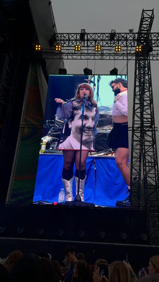 CMAT proudly wore the dress while supporting Sam Fender at Belfast Vital last night, and again today in Dublin to launch her new album, Euro Country.