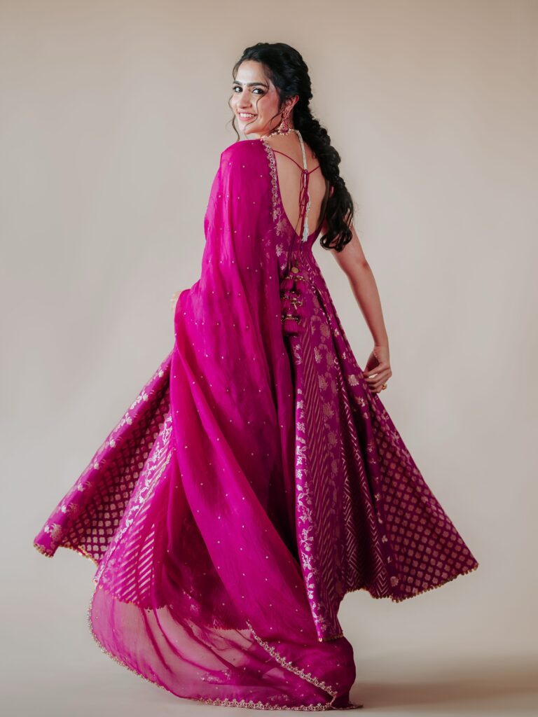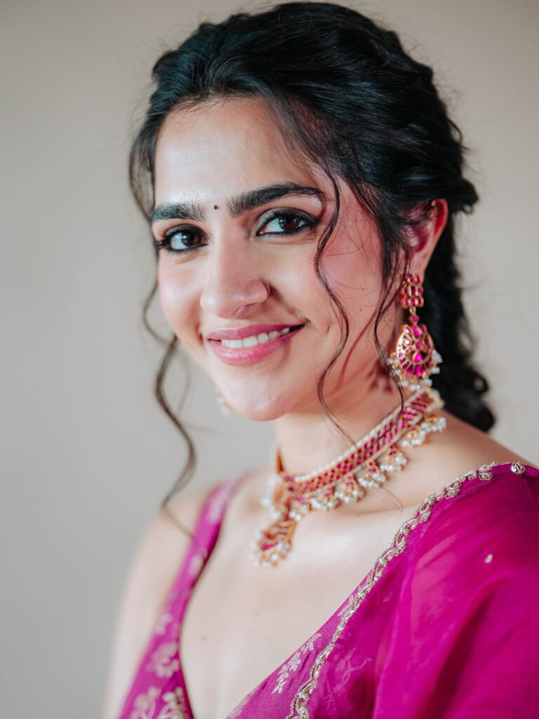 A pink flame lit up the evening when Rukmini Vasanth walked in, draped in a flowy dress that shimmered with tradition and taste. The ornaments she paired with it were not heavy or loud, but enough to carry the pride of her roots.