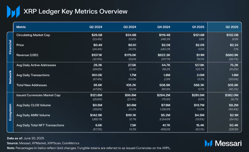 The XRP ecosystem delivered notable growth in the second quarter of 2025, according to a detailed report from Messari.