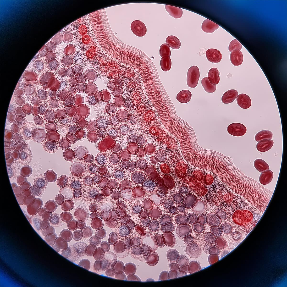 Microscopic, photorealistic image of chronic myeloid leukemia (CML) cells – Generated with Adobe Firefly