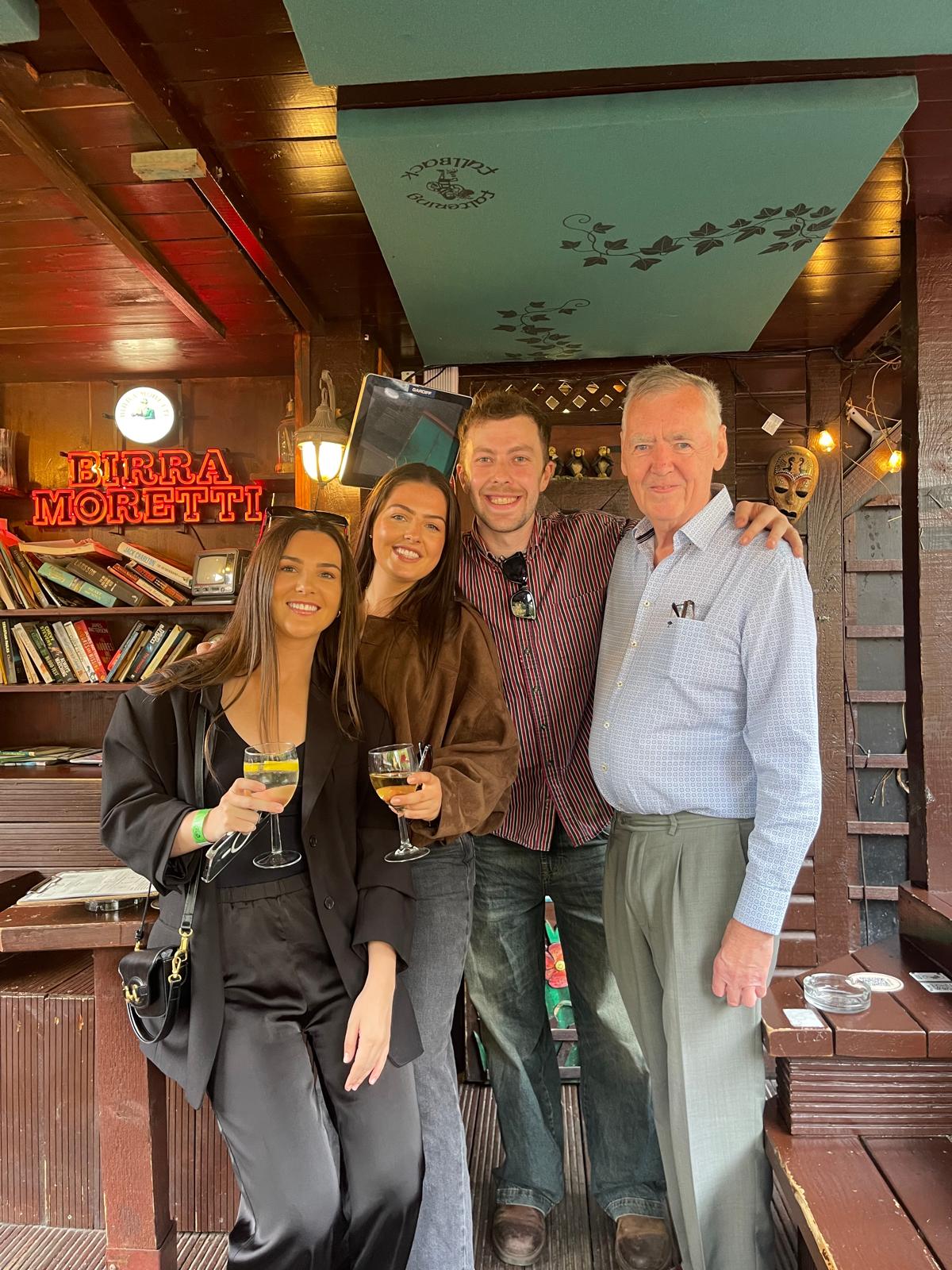 Lucky Limerick natives Laoise Curtin, Tournafulla and Isabelle Condon, Newcastle West, alongside pub owner Michael Fitzsimons, Foynes, snapped a pic with lead singer Eddie Keogh at the memorable event.