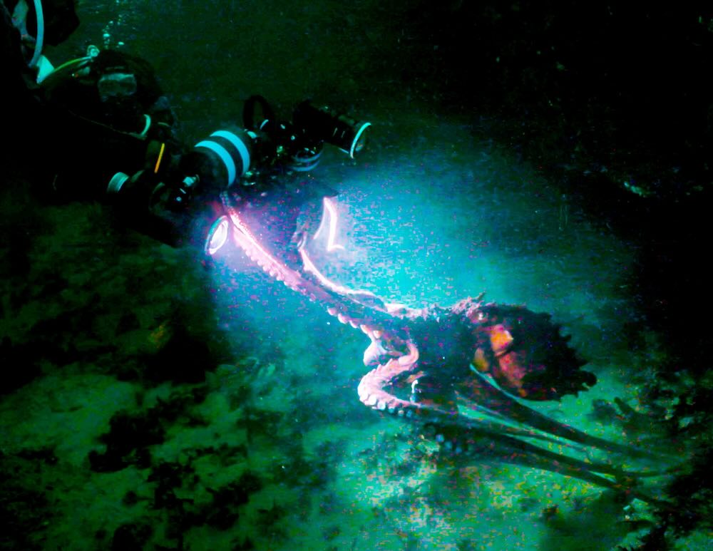 “Chris has got same great photos of it actually holding the camera and aiming it towards the wall. We were joking the octopus was a videographer too.