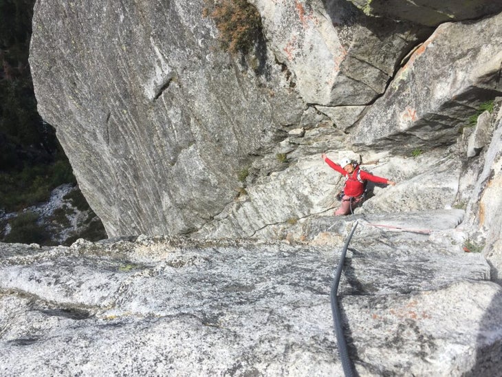 On ‘Angel’s Crest’ (5.10b) in Squamish (Photo: Matt Berke)