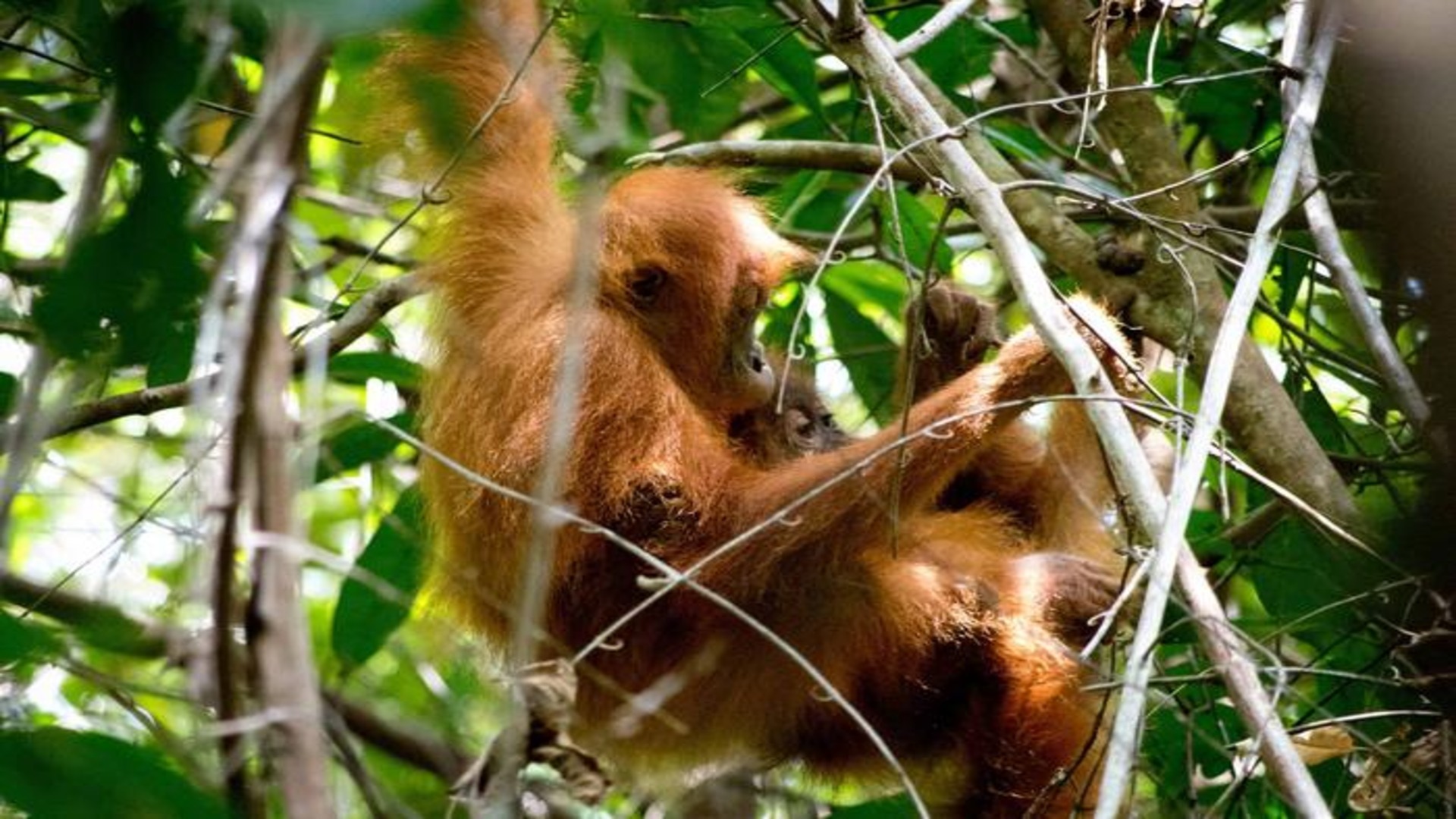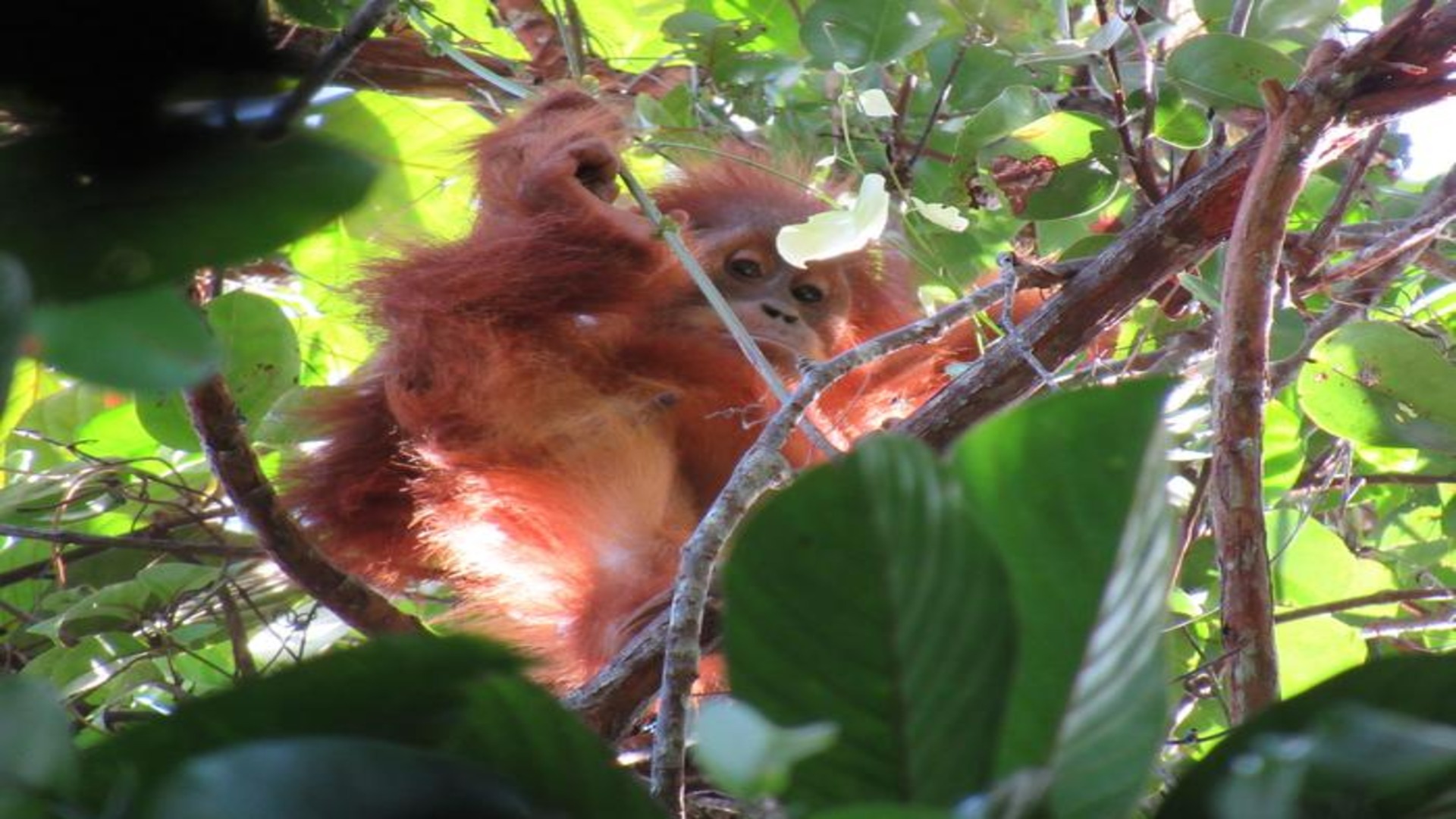 Immature Orangutan Looking Down through the branches / Natasha Bartolotta @ SUAQ Project