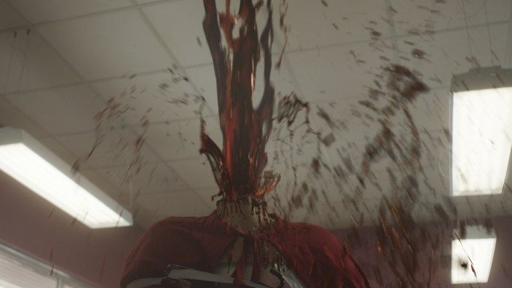 “There was a moment when a brain exploded. So, we placed emphasis on the buildup to that punchline part of a shot, where I think we had the brain bubbling, and it would just increase in frequency and amplitude, and then have this moment where it would just explode. Then we went in just offhand without even consulting [Blair] and the team, and we added these secondary blood squirts. Again, over the top, but it all went into the film.”