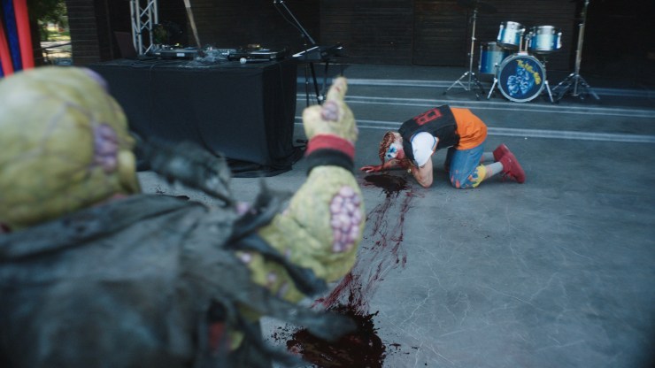 For Compositing Supervisor Ross Nakamura (“The Witcher,” Mad God, Cloverfield), it was a project he really wanted to be a part of. “Oh my God. Most of the team that we worked with, myself, even the producer – I’m dating myself here – but we all grew up with the whole campy, gory thing, like Toxic Avenger,” the artist tells Bloody Disgusting. “I know there’s probably like 10 of them, but I watched up to the second one. As a kid, my parents were totally cool, exposing me to these movies. But it was that, Creepshow, gosh, what else? Basket Case, Ghoulies, all of those films. It was a good primer for everybody to have those sensibilities of what Macon wanted. In the initial meeting, it was more like a roundtable talk, but sharing coffee. I think he’s relatively around the same age, so it was really just a meeting of the minds.”