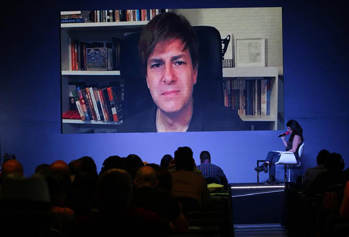 Bookshop.org’s Andy Hunter speaks to Brazil’s Meeting of Publishers, Booksellers, Distributors, and Printers in August. Image: Publishing Perspectives, Talita Facchini