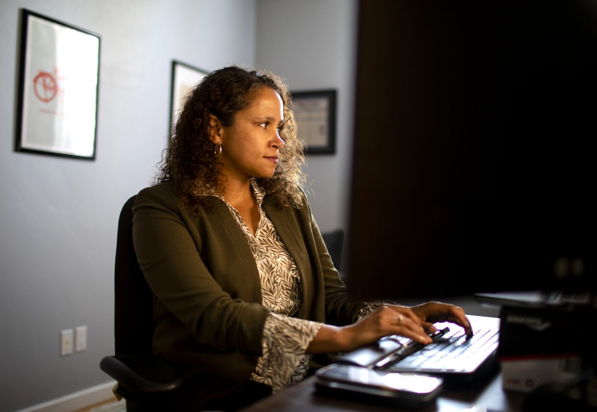Executive Director of the Colorado Broadband Office, Brandy Reitter, works from her home office in Eagle, Nov. 1, 2022. (Hugh Carey, The Colorado Sun)