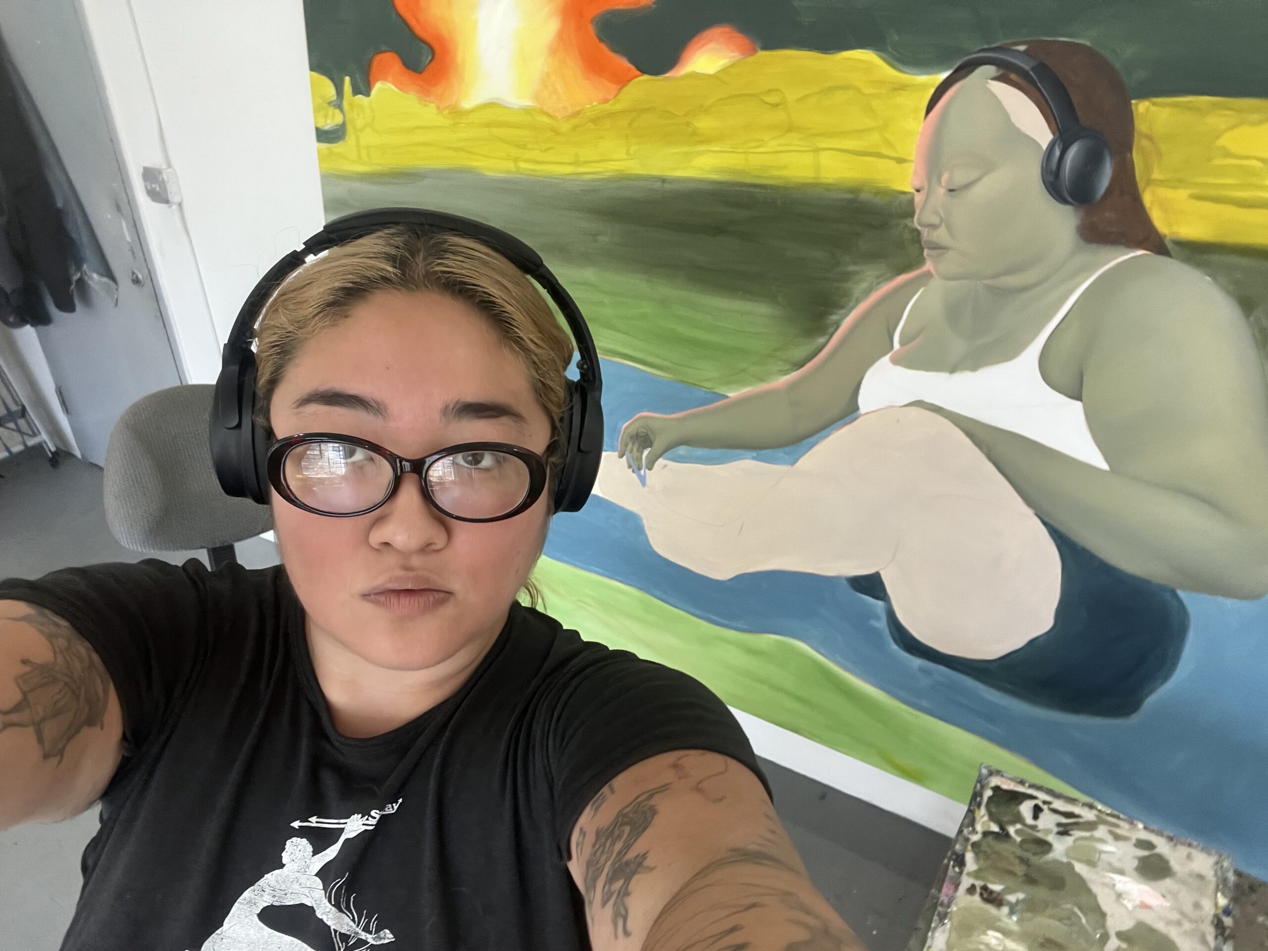 GORDON: Absolutely. I entered college and thought, “Okay, I can paint really realistically.” And then a bunch of professors were just like, “You’re not really painting about anything.” I mean, I think some people’s art who paint about nothing is amazing. But it just wasn’t me, and they could tell. So I really forced myself to think of what I wanted the work to be about and look like. At that time, I was still really insecure because I had just come from my hometown, which was not horrible, it’s just that it was really not diverse. I just didn’t connect really with anyone besides a few, and I had a lot of resentment toward my peers in school. I think being mixed–because my dad’s white and my mom’s Korean, I think my mom said I was white on the census or something. And I was like, “Wait, what?! So I guess I’m white now?”