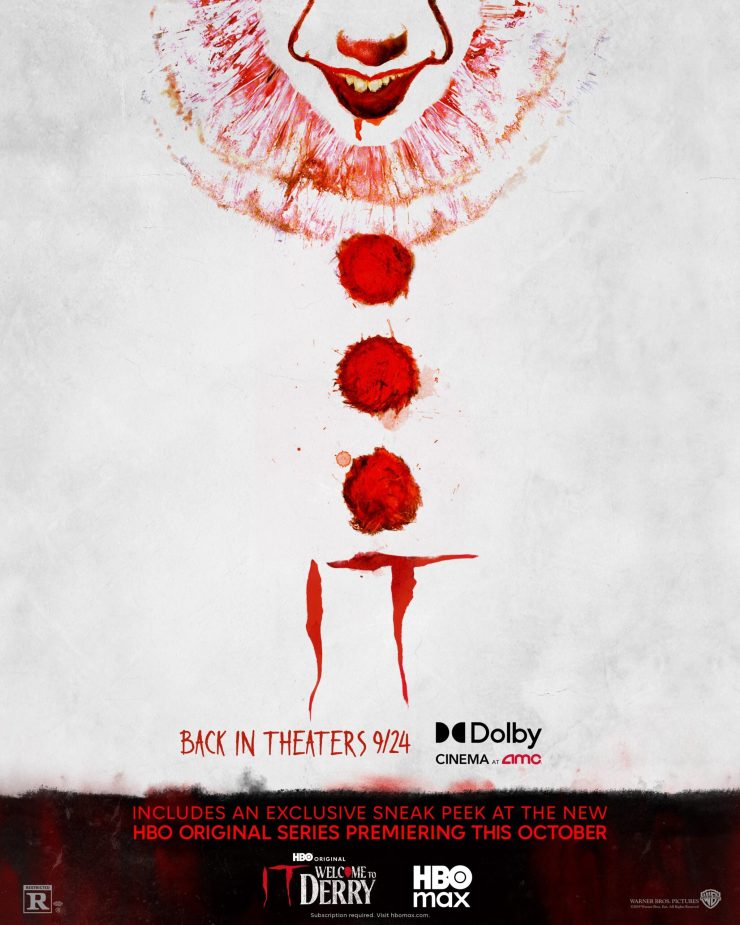 IT: Chapter One (2017) is coming back to the big screen at Dolby Cinema at AMC Theatres on September 24, and the re-release features a sneak peek at HBO Max’s “Welcome to Derry.”