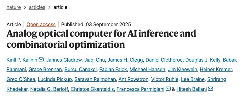 Based on this, the team from Microsoft Research Cambridge, UK, and its collaborators proposed the “Analog Optical Computer” (AOC). Without digital conversion, it can efficiently complete both AI inference and combinatorial optimization tasks simultaneously, and has significant expansion potential and energy – efficiency advantages.